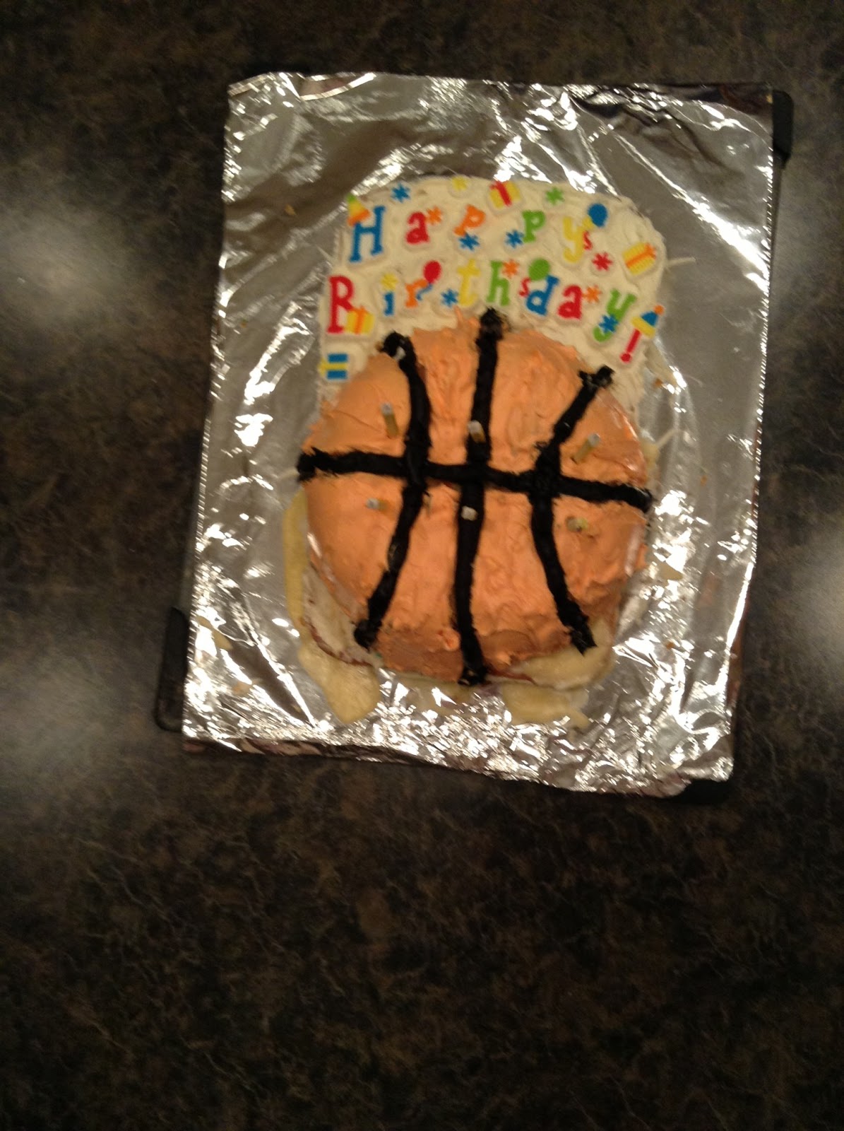 Annabelle kept changing her mind about what kind of cake she wanted. One day it was a marshmallow cake, the next day, she wanted a rainbow cake or a unicorn cake. When I told her she had to choose only one, she decided on a basketball cake. Now, remember, I have no cake decorating training nor do I have any cake decorating tools. Nevertheless, I did the best I could to make a basketball cake and this is the result.
